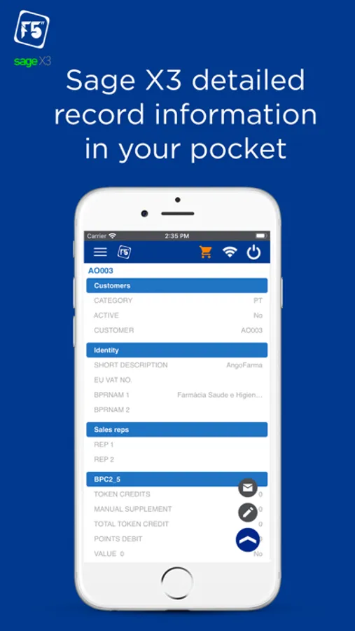 Note: To use this app, it is mandatory the use of web services from SAGE X3. For more information contact app_support@f5it.pt or your SAGE Partner.
