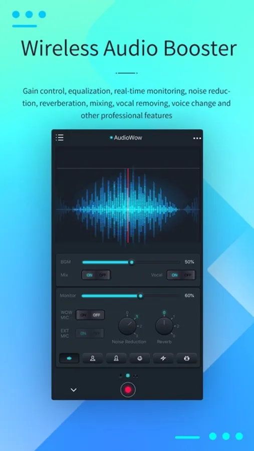 A powerful app with professional recording, entertainment, phone call boosting, and digital tuning. Works with the Sabine AudioWow wireless sound card.