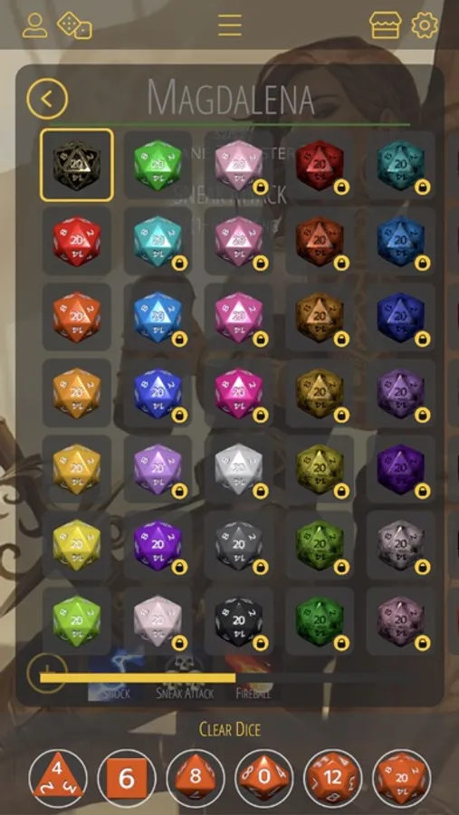 Choose your dice from over 50+ pre-made colors and materials (Unlocked with In-App Purchase).