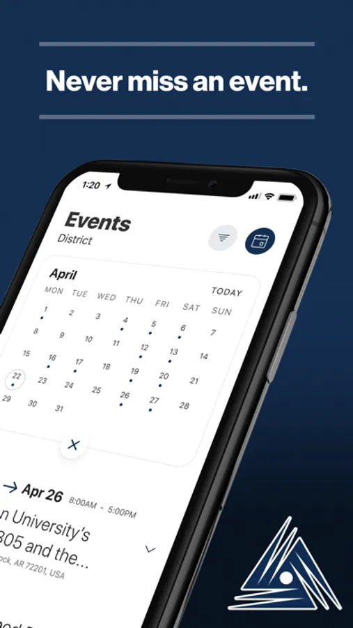 The event section shows a list of events throughout the district. Users can add an event to your calendar to share the event with friends and family with one tap.