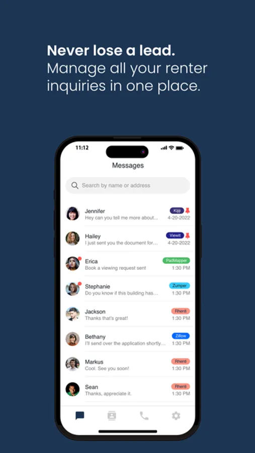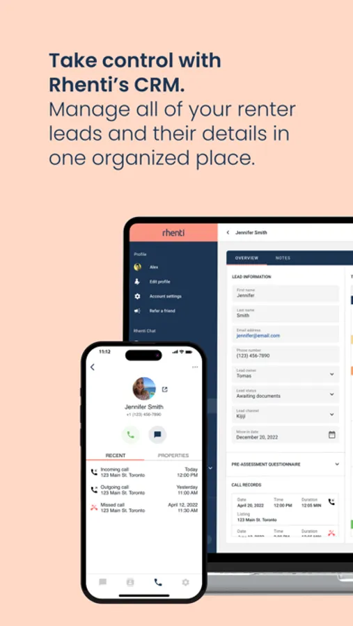 • Use the Rhenti app to send and receive phone calls from renter leads