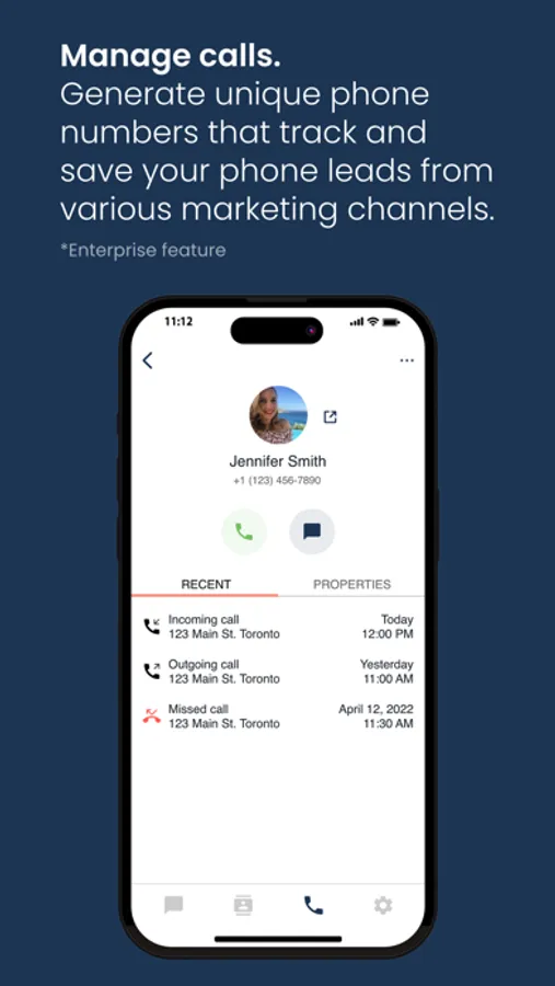 • Phone numbers are saved in your Rhenti app’s CRM/Lead hub