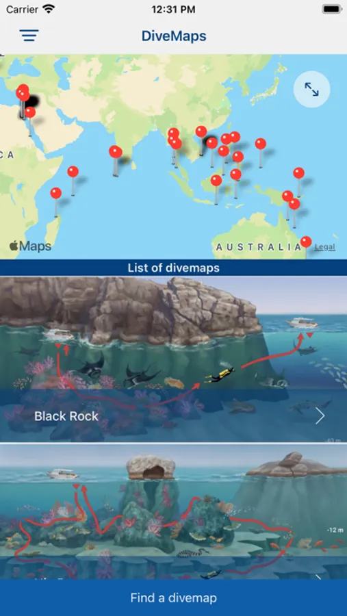 DiveMaps is an app made by divers for divers. Here you can find detailed maps of underwater routes, a free logbook, tests, a diving encyclopedia and much more.