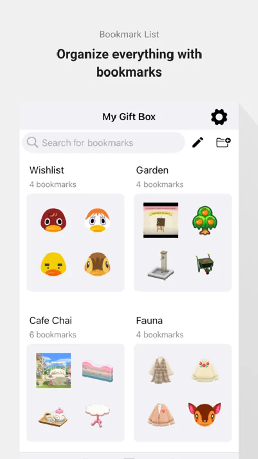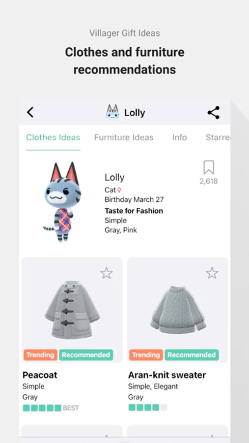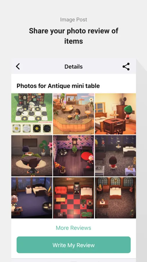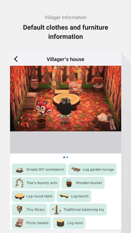 Get recommended clothes and furniture for our villagers, and find items and custom designs to decorate their yards. Share your photo review of your island and villager. Collect inspirational images, items, and custom designs in your bookmarks.