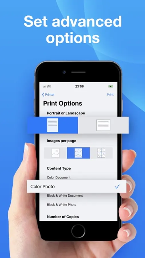 Easily switch from color printing to black & white. The app provides you with a smart panel to customize your prints.