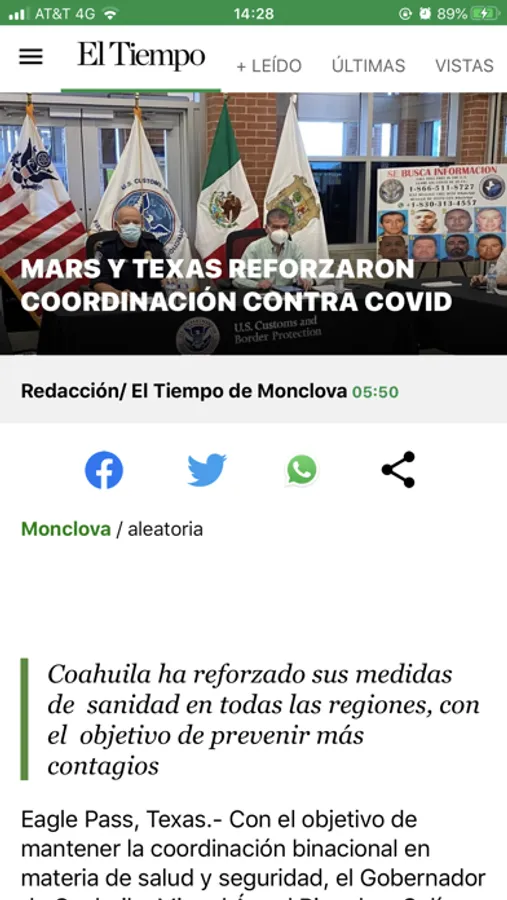 Incluye las principales notas del acontecer diario nacional e internacional, finanzas, deportes y la vida social de Monclova.