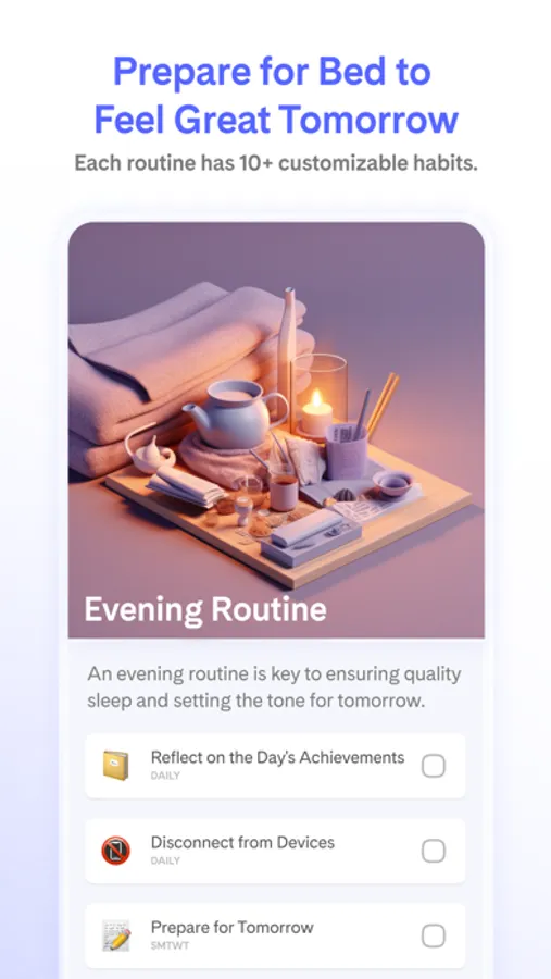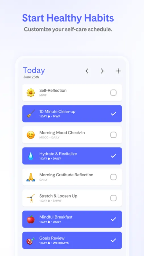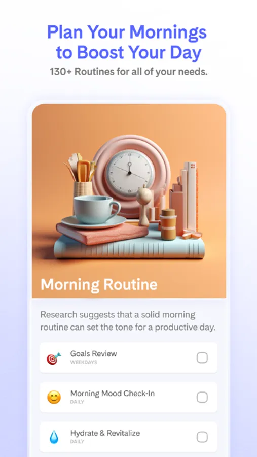 - Create your personalized daily routine and set friendly reminders for your to-do list.