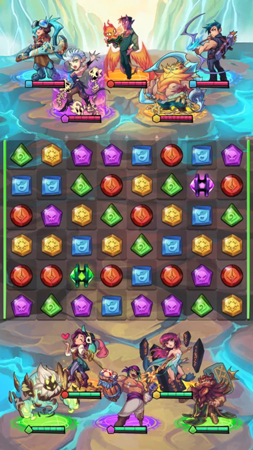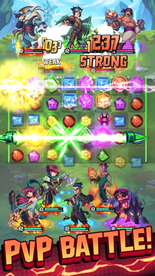 You and the enemy take turns solving match 3 puzzles on the same board. Form powerful match 3 combos to smite the enemy heroes or play defensively to deny their most powerful attacks. Make fun tactical tile matches to defeat the enemy in PvP combat.