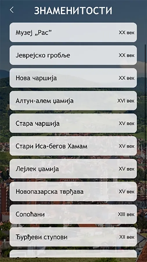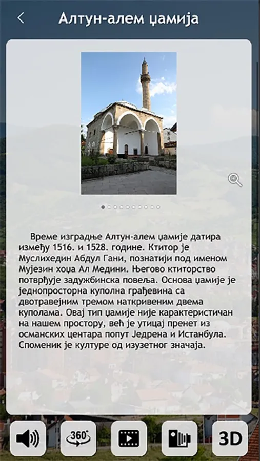 The application is a multilingual multimedia guide through the city of Novi Pazar that provides detailed information about the many sights of this multiethnic and multicultural environment.
