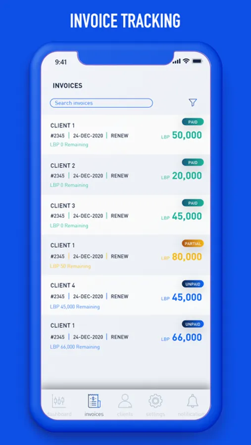 • View all your clients with their balanace