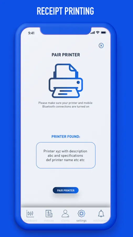 • Print receipts on payment using any bluetooth printer