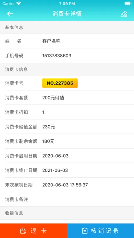3、饮品宝可以方便的查看每张卡的核销记录;