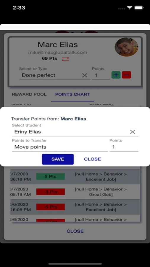 Add point, Transfer points, and Deduct point to re-enforce positive behavior.