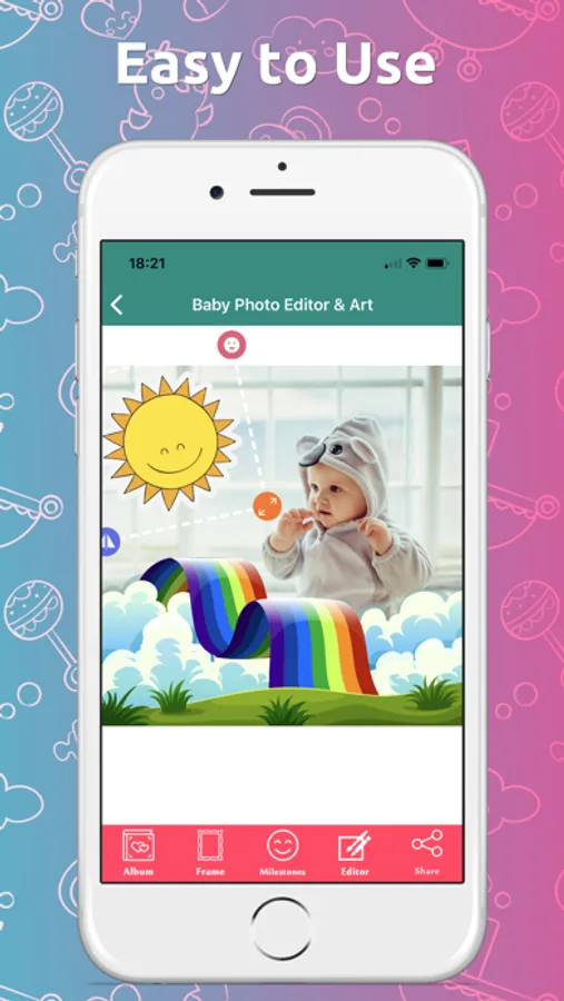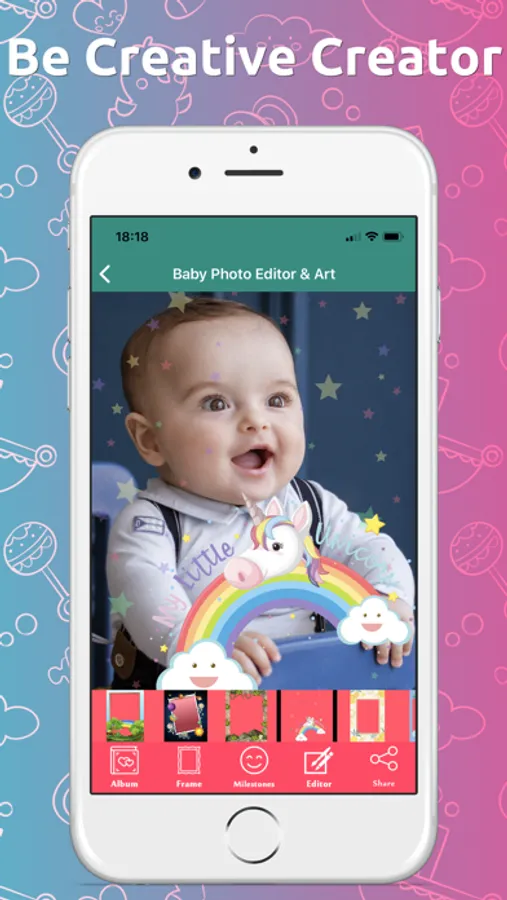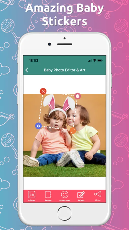 PhotoEditBoom turns your baby's precious little moments into lasting memories. Capture adorable baby milestone photos by adding gorgeous hand crafted stickers, custom text, amazing photo frames and much more. Save your baby's pics to your own device or share with friends and family instantly.