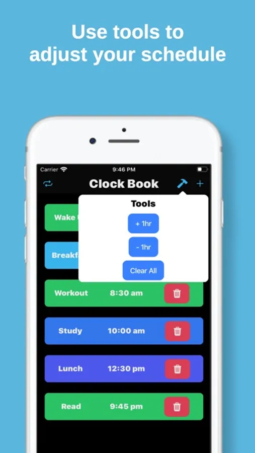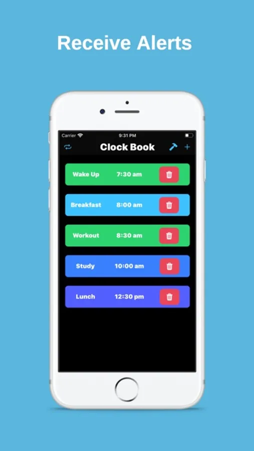 Use the Daily Clock Book to create everyday tasks and receive notifications when they begin.
