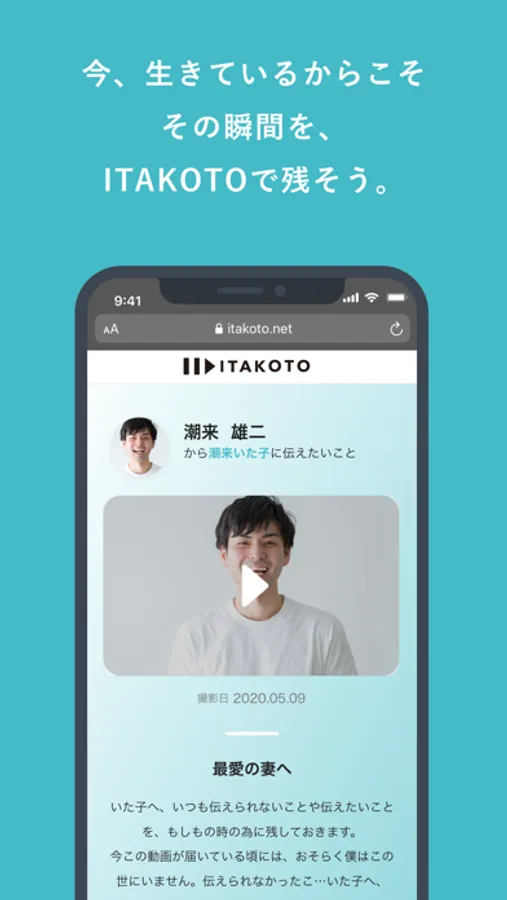 ■ITAKOTOアプリで遺書動画をとって大切な人に贈ろう。