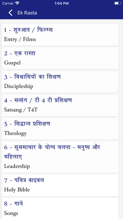 Ek Rasta is a multi-part Bible teaching and discipleship course used in many places around the world. This multi-language app offers free video, audio and written resources.