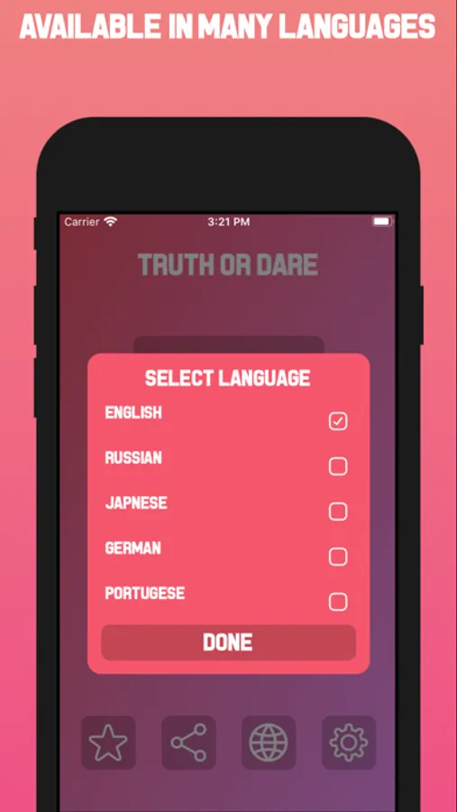 - The app is available in English, Russian, Portuguese, German, French, Spanish, Japanese