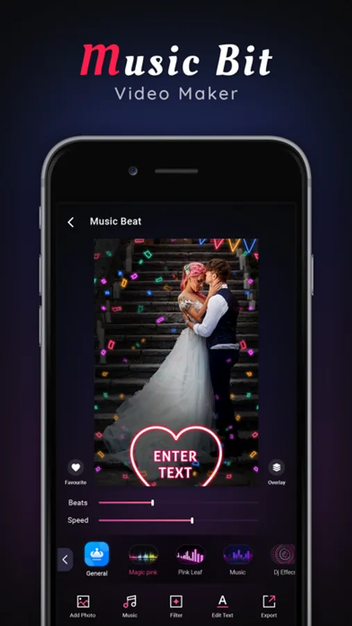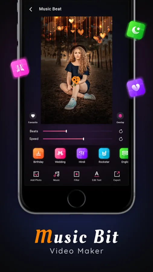 You can create animated Photo Video Maker with Beat wise particles effects with your favorite song track.