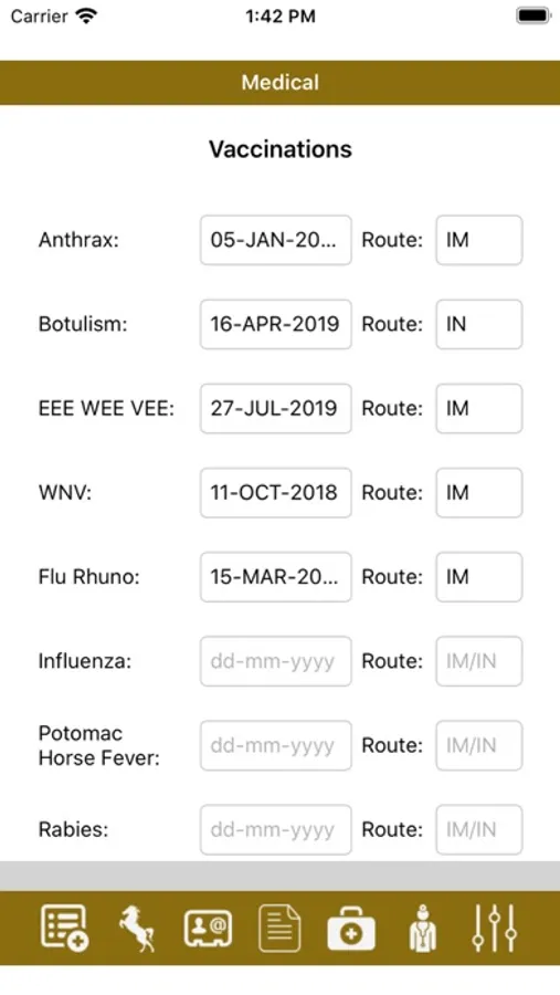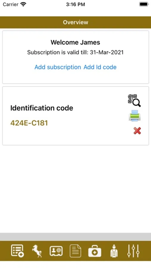 An identification code (qr-code) is also assigned to each horse profile allowing authorised veterinarians to access the horse records using the veterinarian Horse Medic app (available on the store). Granted access to the veterinarian Horse Medic app allows the veterinarian to modify the medical information and vaccinations records of the horse. Consultations reports created by the veterinarians using Horse Medic app, are visible to horse owners through the Horse-ID app.