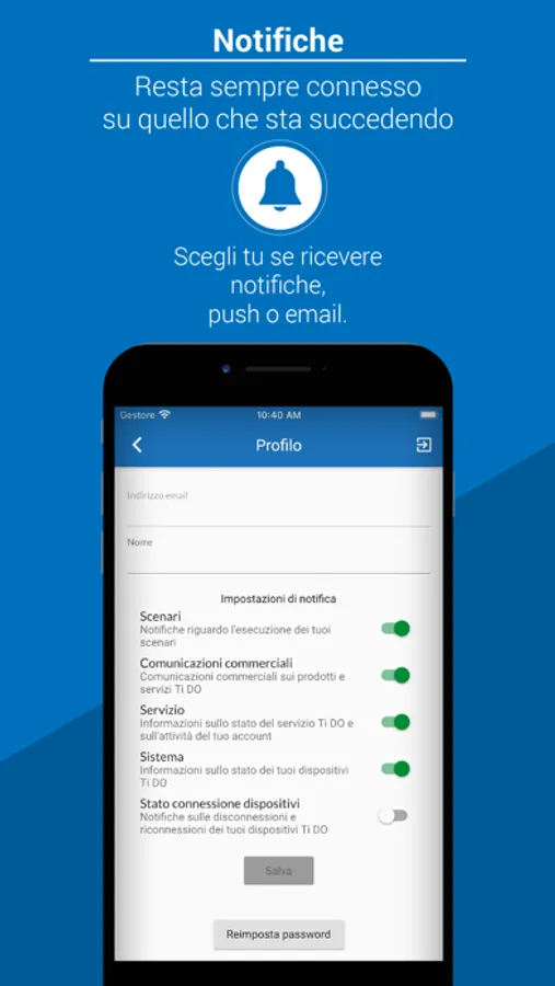 I dispositivi Ti DO Ready sono gestibili attraverso l’app Ti DO ed integrabili con l’assistente virtuale del tuo telefono e con gli smart speaker di casa, inoltre potrai definire routine e scenari con la più famosa piattaforma di automazione.