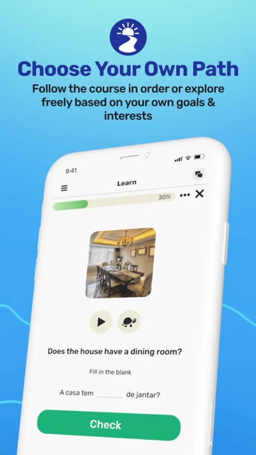 • Learn everything from basic greetings and forming questions, to more specialized content like buying a home, ordering food, opening a bank account, and more!