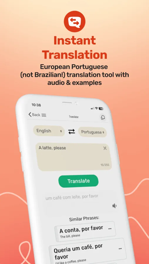 • Verbs: Master 100's of popular Portuguese verbs, so conjugating becomes second nature.