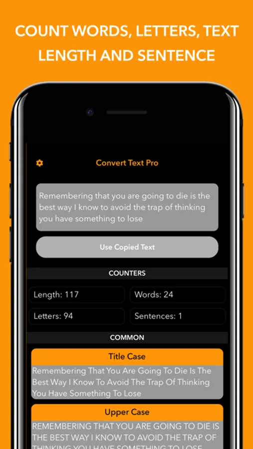 Convert Text allows you to convert any text to the most popular formats.
