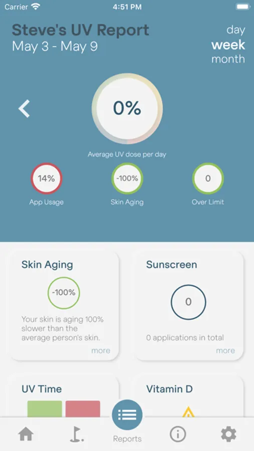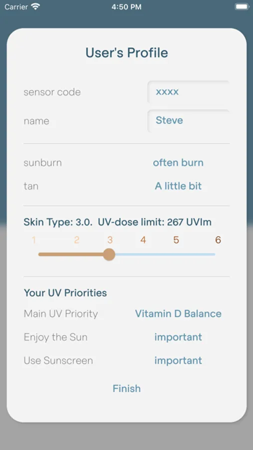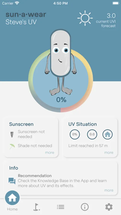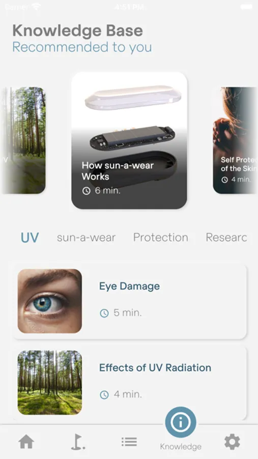 The sun-a-wear sensor is worn on the body and measures the UV radiation in sunlight. The sun-a-wear app on your smartphone can suggest protective measures or display the total radiation dose that has accumulated over the day. You can set your personal UV dose limit and sun-a-wear will inform you when you have reached it.