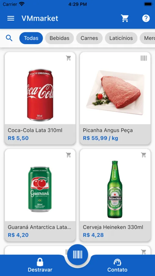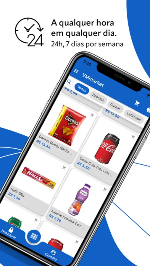 Além de permitir a compra dos produtos de maneira prática e segura, o VMmarket permite o destravamento de portas ou geladeiras com produtos restritos, conforme regras de acesso da loja.