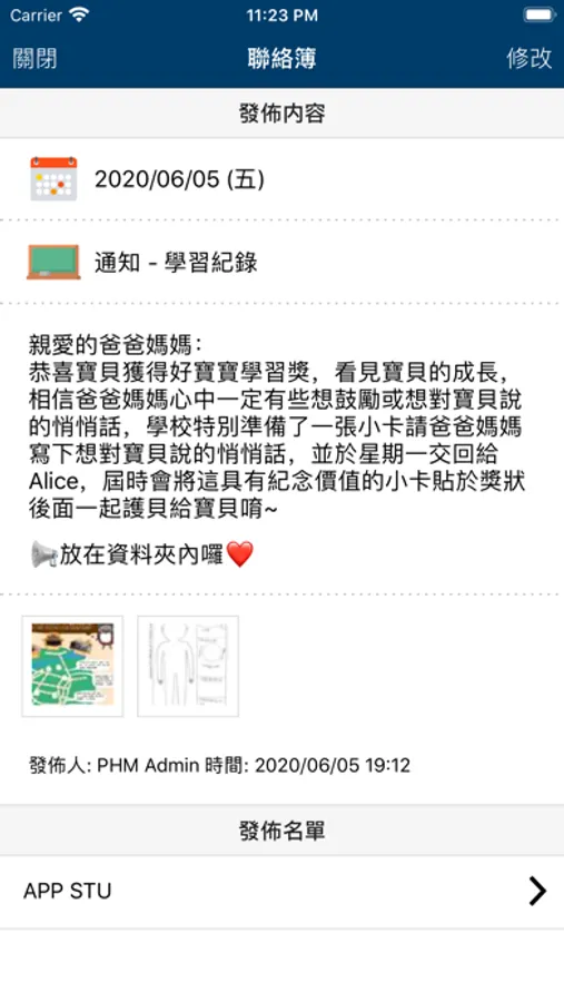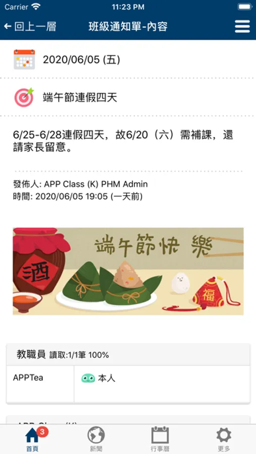 2. 班級通知單:接收班級教師或學校發送的訊息。