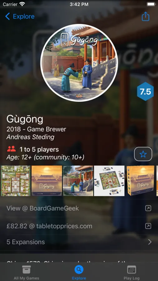 * Configure your location in the settings and use price data provided by tabletopprices.com to quickly see how much a game costs and where you can buy it.