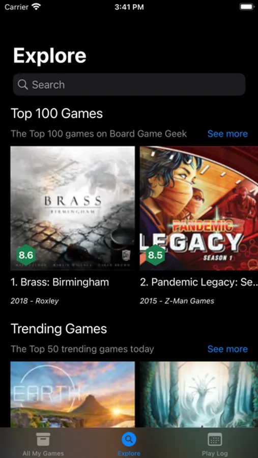 * Making use of data provided by boardgamegeek.com, use Game Book to search for new games to play and add them to a custom list.