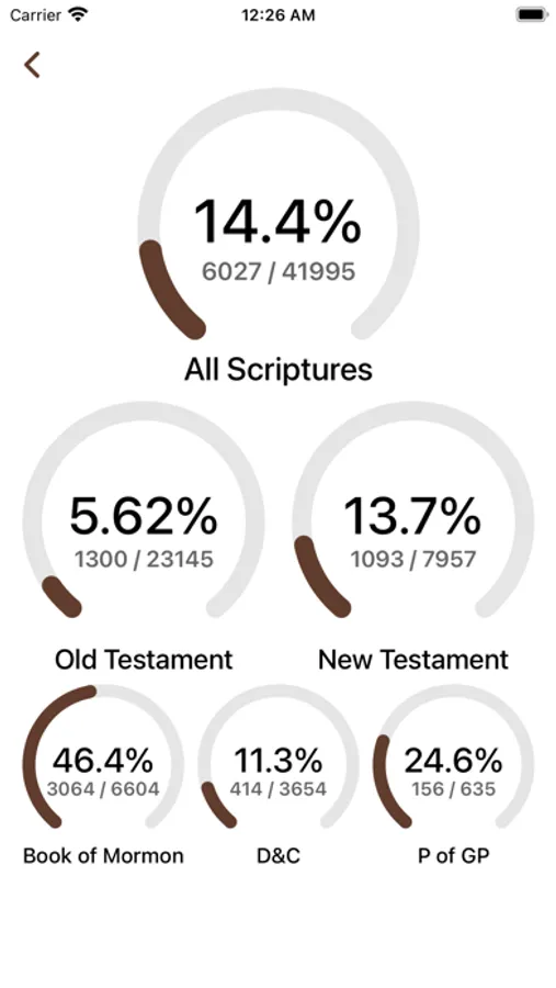 - Keep track of how many scriptures you’ve received from each volume on the Dashboard.