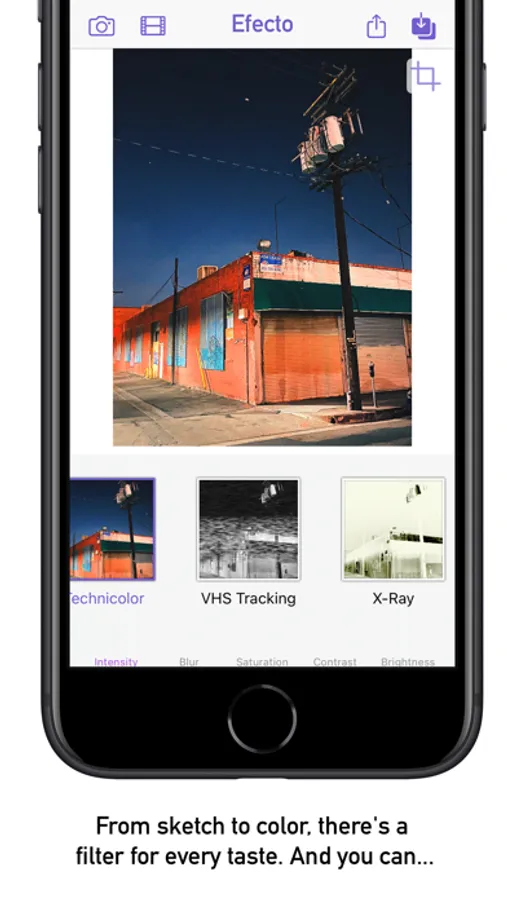 Want to add some custom style to your shots? Pick a pic from your library or take one with your phone or your iPad's built-in cameras. Then mix your photo with a bunch of hand-crafted filters to enhance its look with some flair: from sketch to color, from blue to red, there's a filter for every taste.