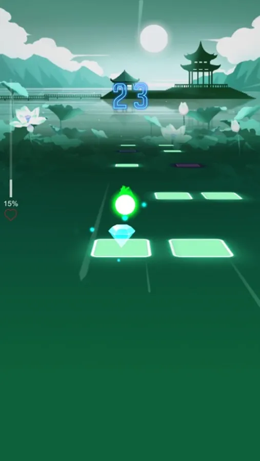 1. Hold and drag to keep the bouncing ball on the music tiles .