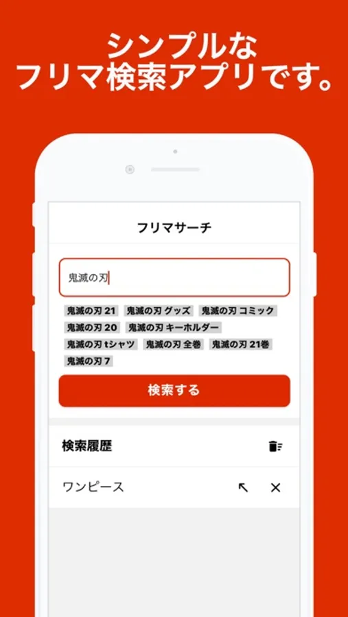検索ワードを入力するだけで、3つのフリマアプリの検索結果を閲覧できます。