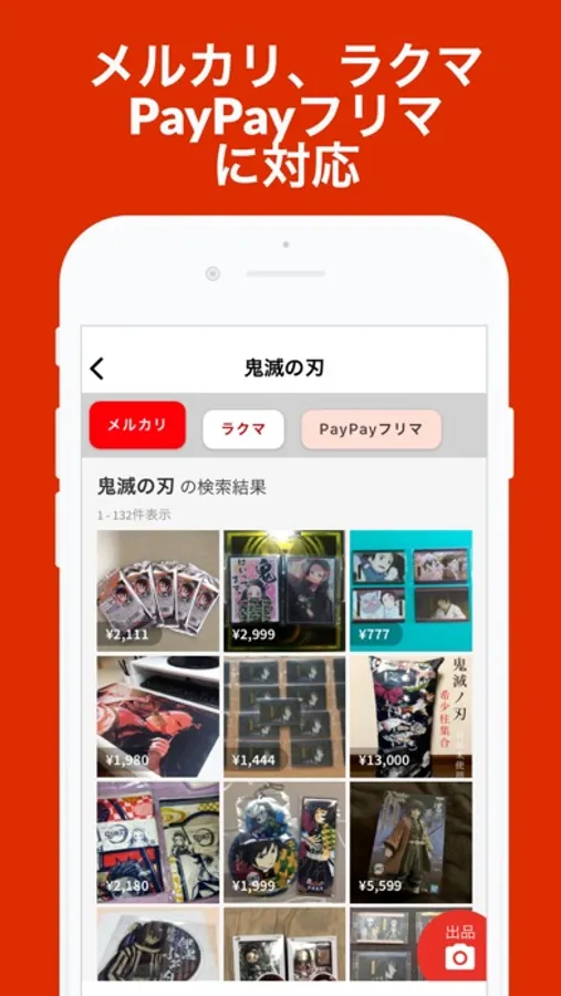 「メルカリ」「ラクマ」「PayPayフリマ」を一括検索できるアプリです!