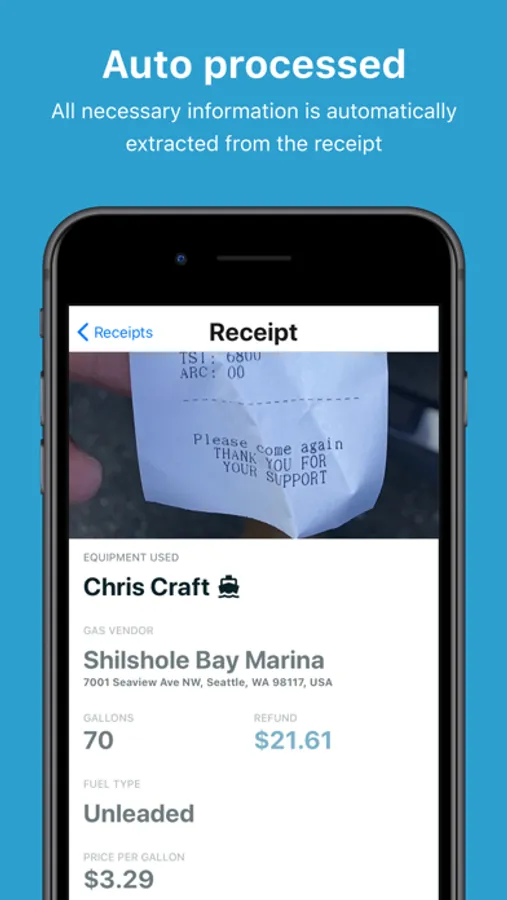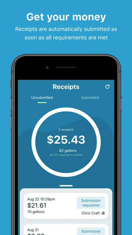 It’s as easy as taking a photo. Gallons streamlines your submission process by making it as easy as taking a photo of your receipt. Your receipt is automatically processed and submitted.