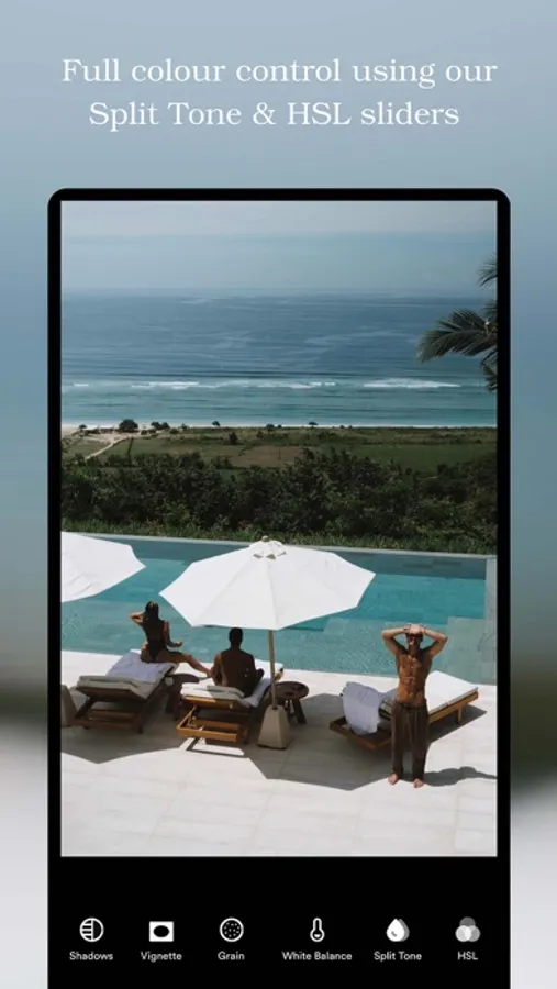 Perfect your edit using our 13 professional adjustment tools, including HSL, shadows, grain, and more.