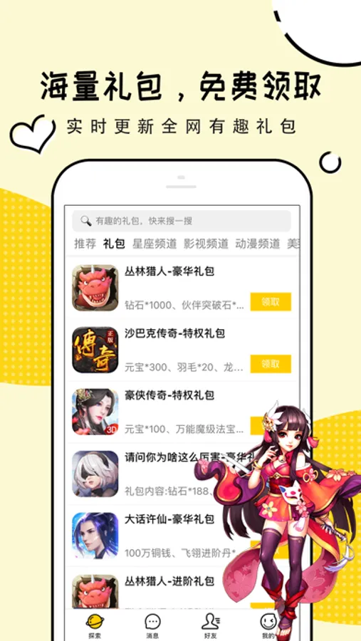 有趣的礼包免费领!有趣的灵魂随意聊!快跟你的好友一起来探索神秘而又有趣的礼包君吧!