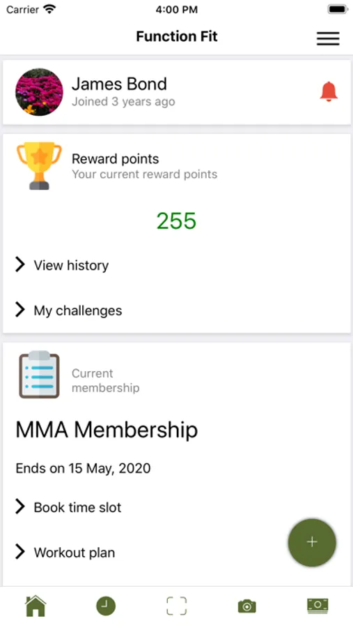 Function Fit app automatically syncs with your studio to give you information about your fitness journey.