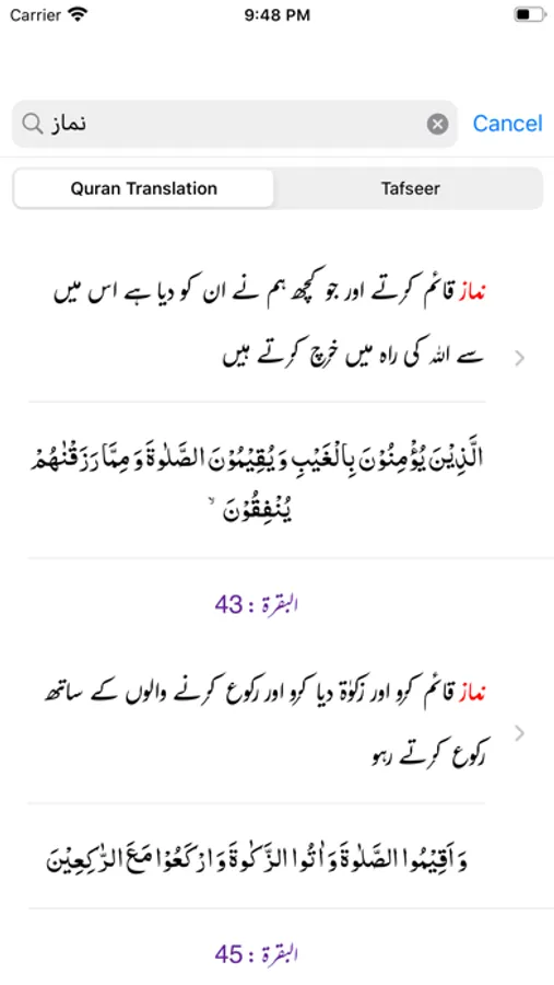 - Advance Search functionality in Quran, Translation (Tarjuma) and Tafseer