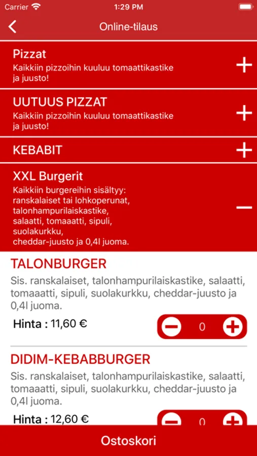Tilaa pizzat ja kebabit noutona tai kotiinkuljetettuna. Tarjontaamme kuuluvat pizzat, Uutuus pizzat, Kebabit, XXL Burgerit, Ateriat, Lapsille, Falafelit, Salaatit ja Juomat.