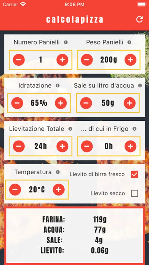 Con l'app calcolapizza otterrai la giusta quantità di ingredienti da utilizzare per la tua pizza verace napoletana.