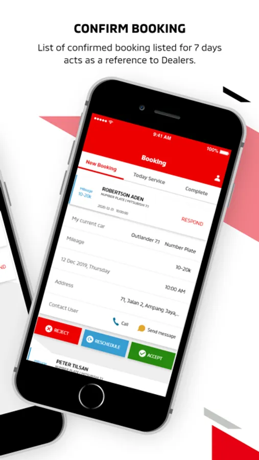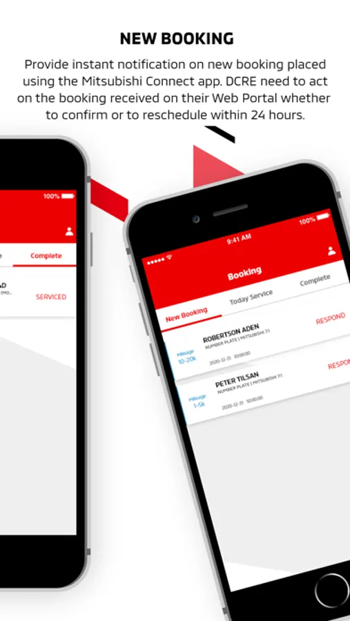 Provide instant notification on new booking placed using the Mitsubishi Connect app. DCRE need to act on the booking received on their Web Portal whether to confirm or to reschedule within 24 hours.