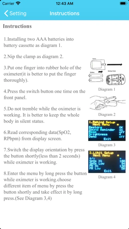 This app is only for use with the finger pulse oximeter produced by our company and connect the device by the bluetooth.