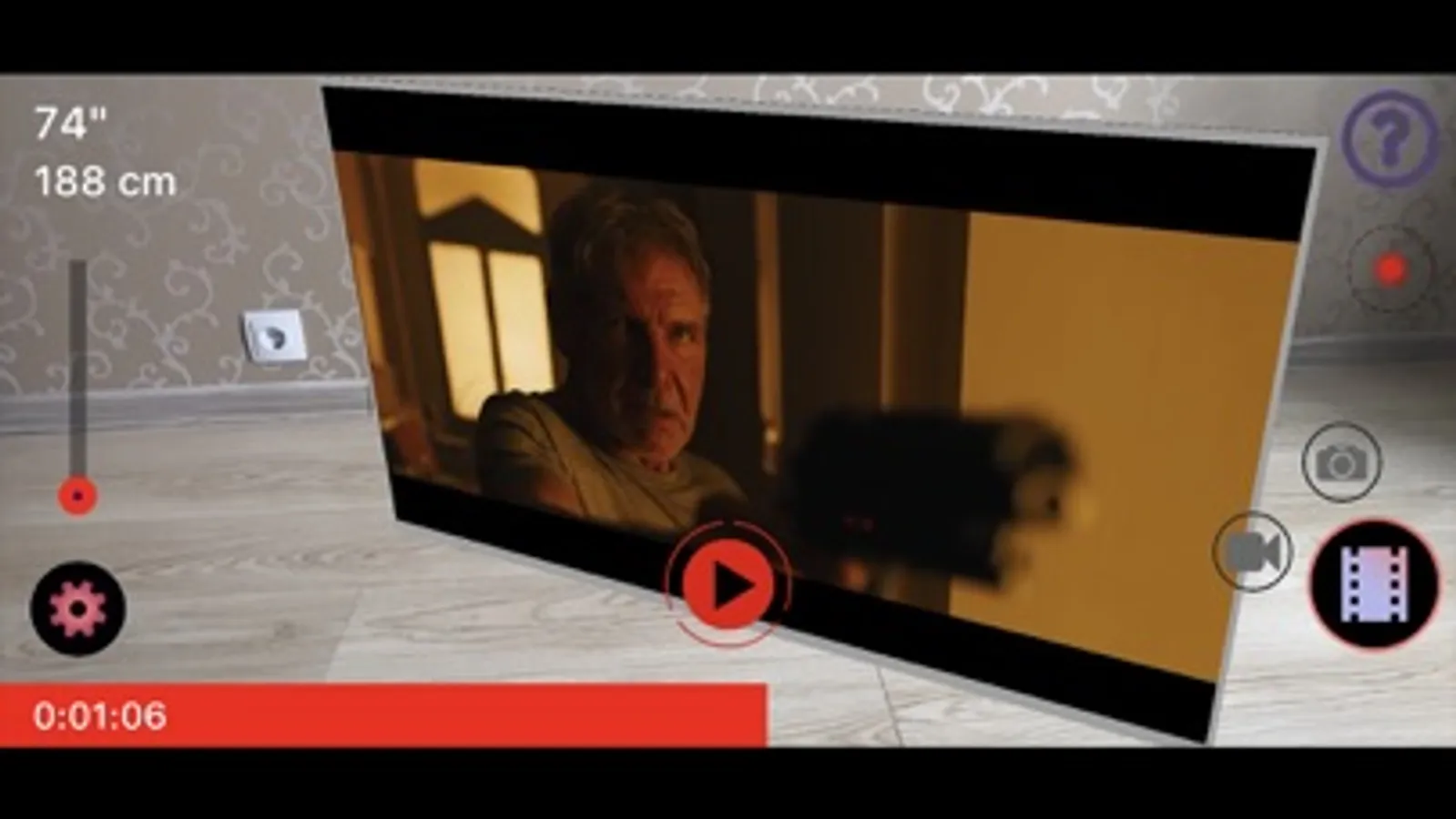 AppAR Video Player is an augmented reality video player designed to help you choose the right screen size for your projector or TV. To do this, select the vertical (horizontal) surface and place any video on it.