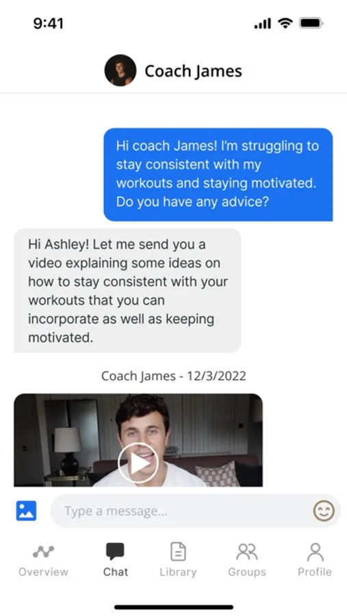 - Chat function, where you will have continuous support from James and the team as your personal coaches