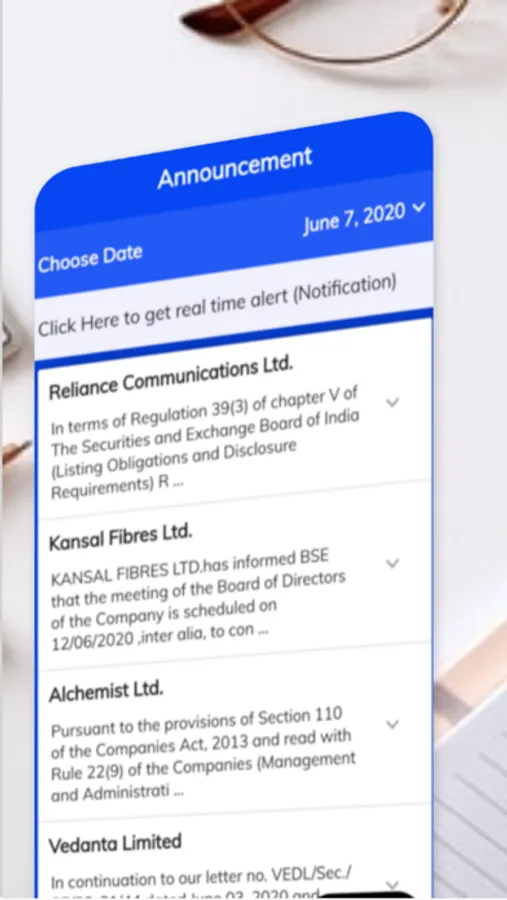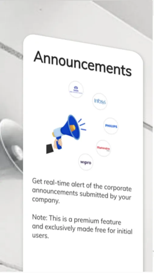 Real times alerts of company announcements on BSE. It gives you an edge in the world of Investing.
